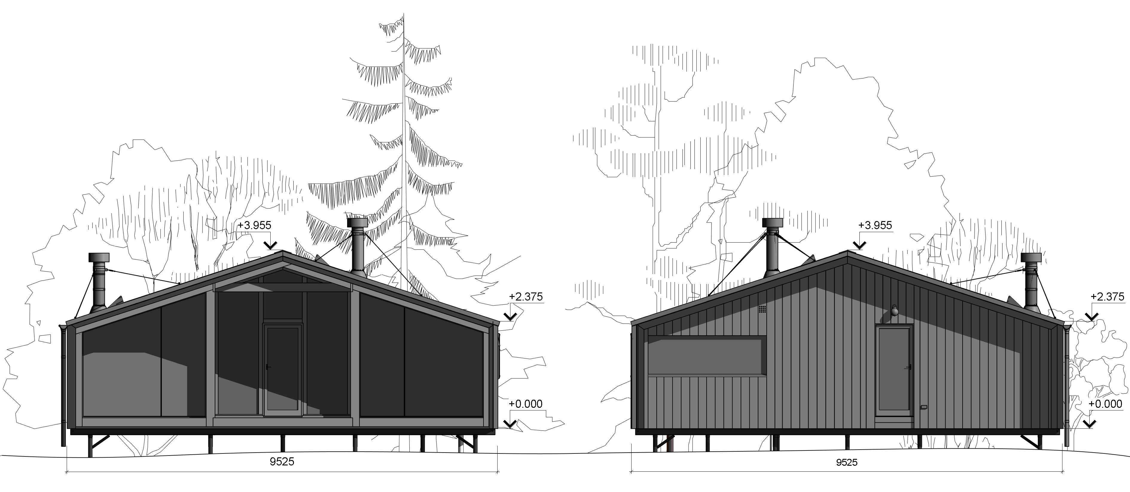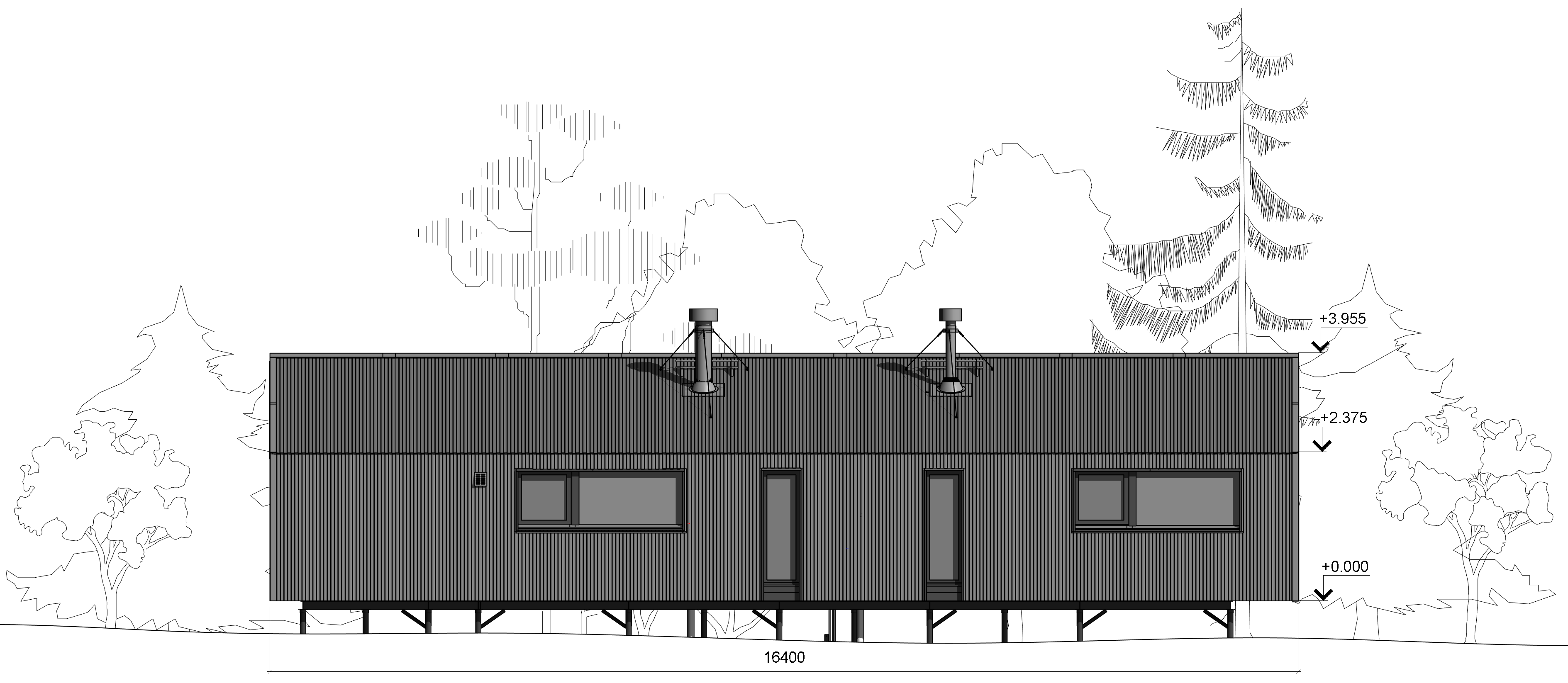 Vnější rozměry domu (HxWxD): 3.95х9.52х16.4 m Obytná plocha: 103 m² Zastavěná plocha: 147 m² Výška stropu: 1.85-3.28 m